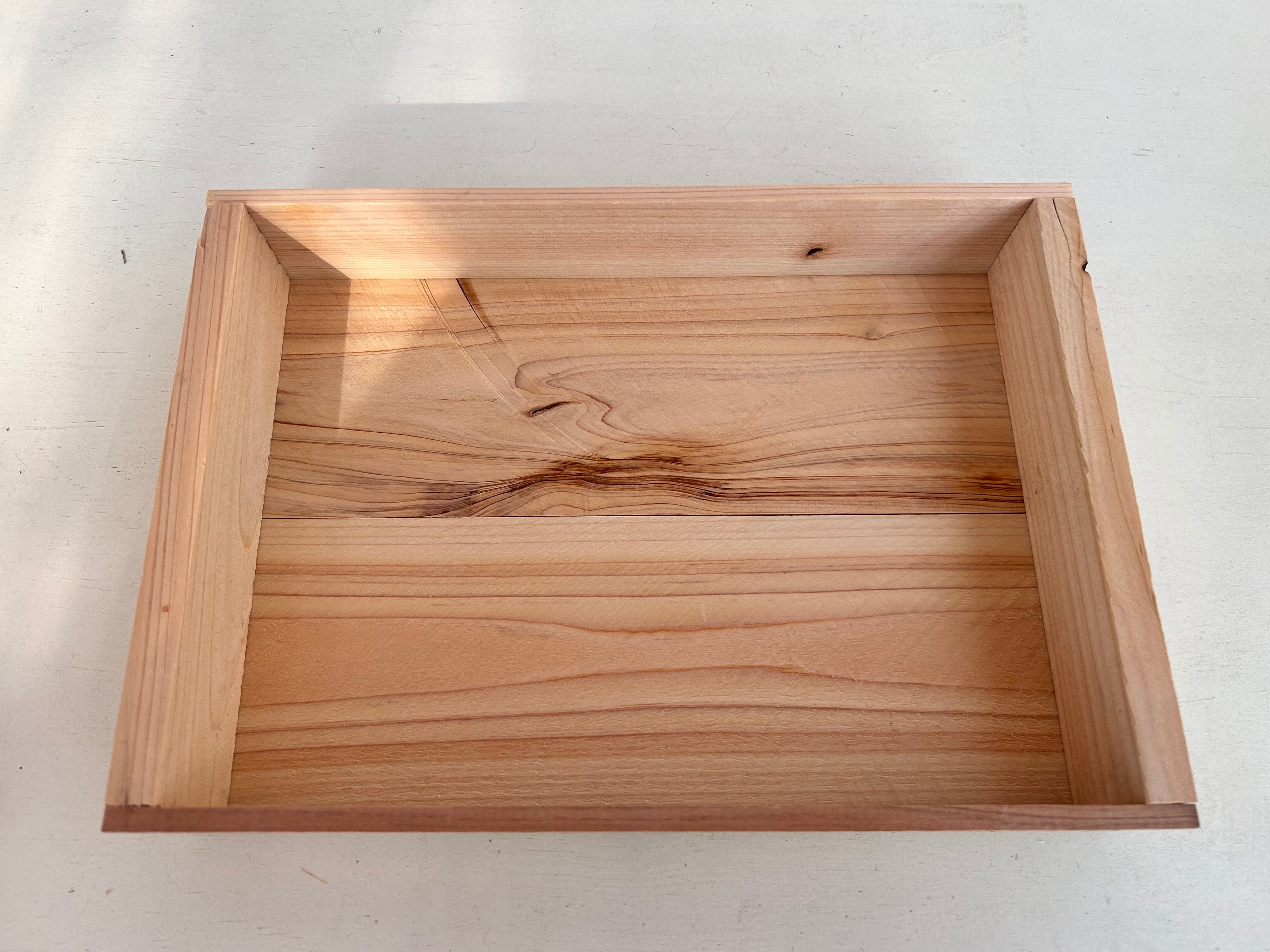 穴は空いていませんが、隙間があり、通気性も抜群。取り扱いしやすい軽さの木箱です。